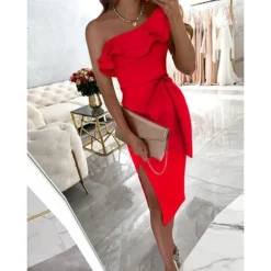 Party Dress Black Wine Red Pure Color Summer Spring 2023 S M L XL 2XL