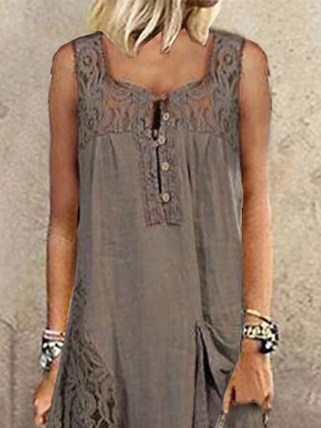 Women’s Casual Dress Cotton Linen Dress A Line Dress Maxi Long Dress Cotton Blend Fashion Modern Outdoor Daily Vacation Spaghetti Strap Lace Patchwork Sleeveless Summer Spring 2023 Regular Fit Khaki