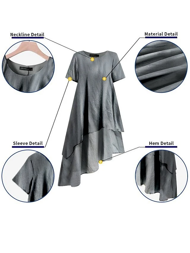 Women’s Casual Dress Cotton Linen Dress A Line Dress Midi Dress Cotton Blend Basic Modern Outdoor Daily Crew Neck Ruffle Layered Short Sleeve Summer Spring 2023 Loose Fit Blue Green Gray Plain S M L