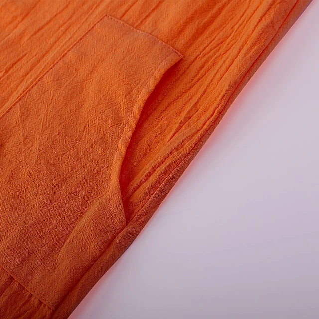 Women‘s Casual Dress Cotton Linen Dress Shift Dress Knee Length Dress Gray Khaki Orange Dark Gray Long Length Sleeve Pure Color Pocket Button Spring Summer Fall Crew Neck Basic Loose S M L XL XXL