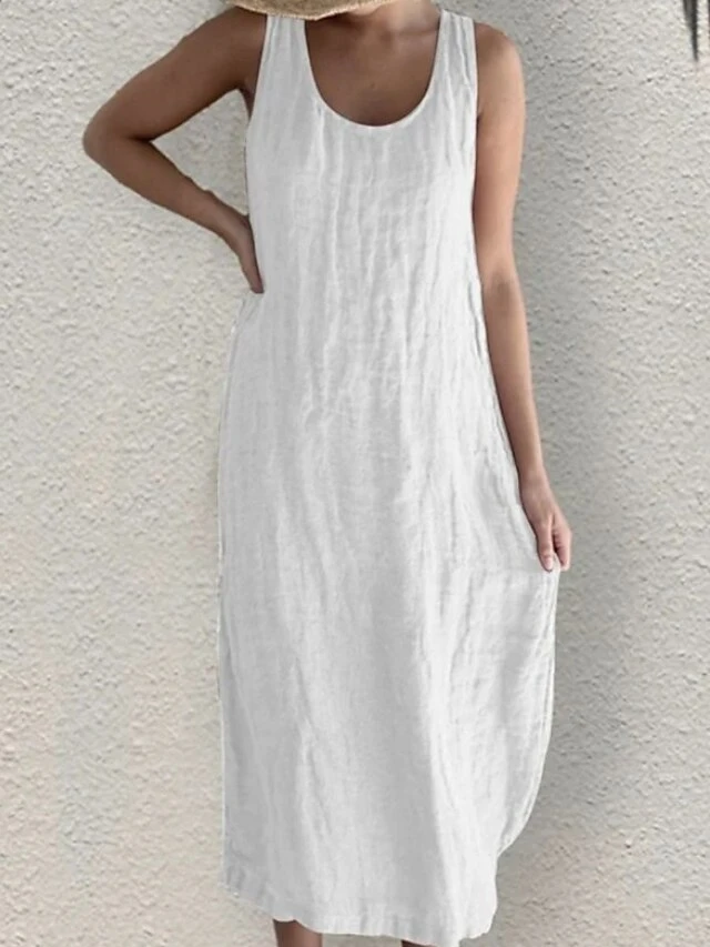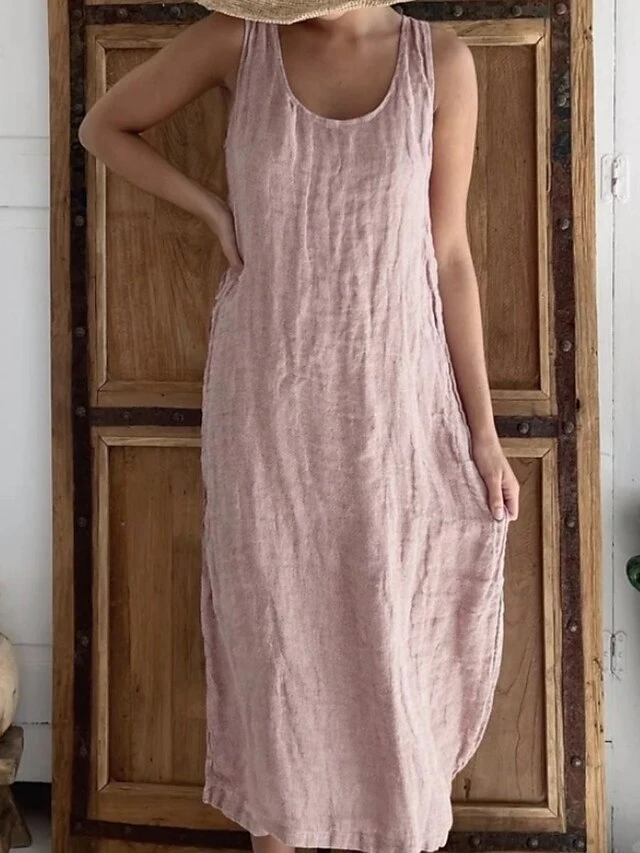 Women’s Casual Dress Cotton Linen Dress Shift Dress Midi Dress Bamboo Modern Casual Daily U Neck Ruched Sleeveless Summer Spring 2023 Regular Fit Black White Pink Pure Color S M L XL 2XL