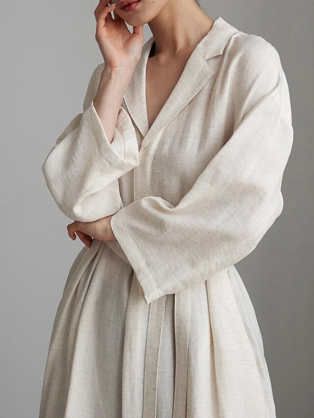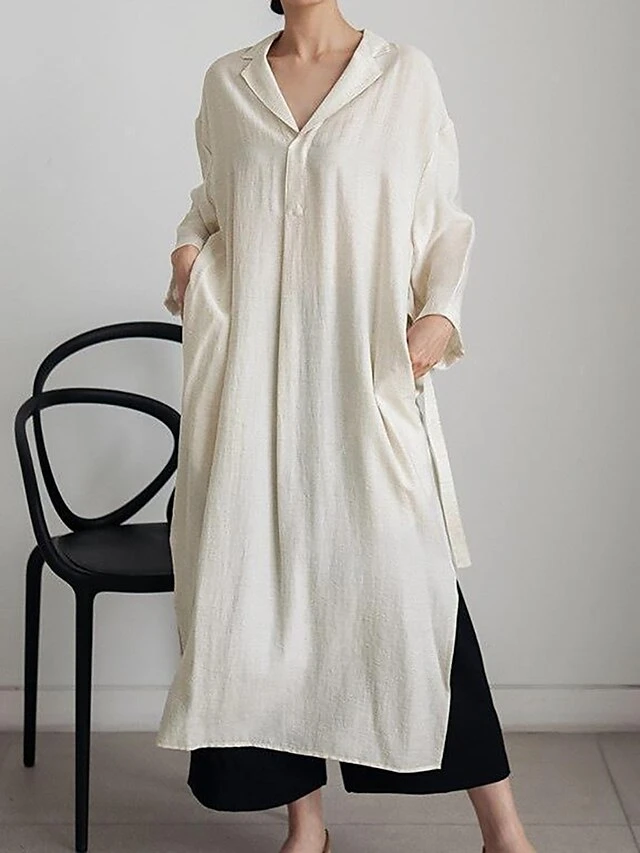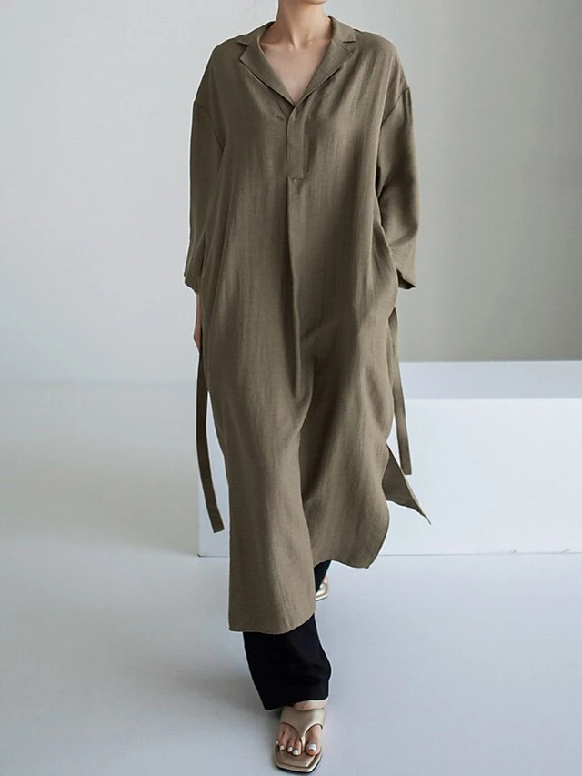 Women’s Casual Dress Cotton Linen Dress Shift Dress Midi Dress Linen / Cotton Blend Fashion Basic Outdoor Daily Vacation Shirt Collar Lace Up Pocket Long Sleeve Fall Winter Autumn 2023 Loose Fit