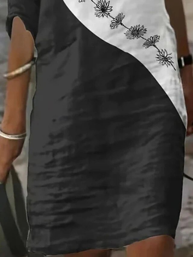 Women’s Casual Dress Cotton Linen Dress Shift Dress Mini Dress Cotton Blend Fashion Modern Outdoor Daily Vacation V Neck Patchwork Button Half Sleeve Summer Spring 2023 Regular Fit White Flower S M L