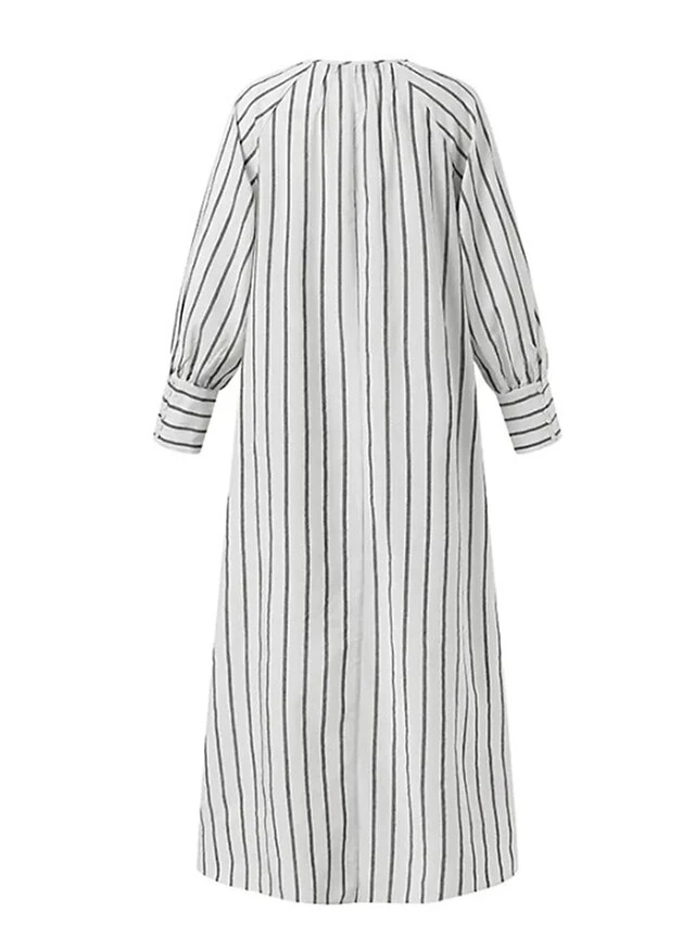 Women’s Casual Dress Cotton Linen Dress Swing Dress Maxi Long Dress Cotton Blend Fashion Classic Outdoor Daily Vacation Split Neck Button Print Long Sleeve Summer Spring Fall 2023 Loose Fit White