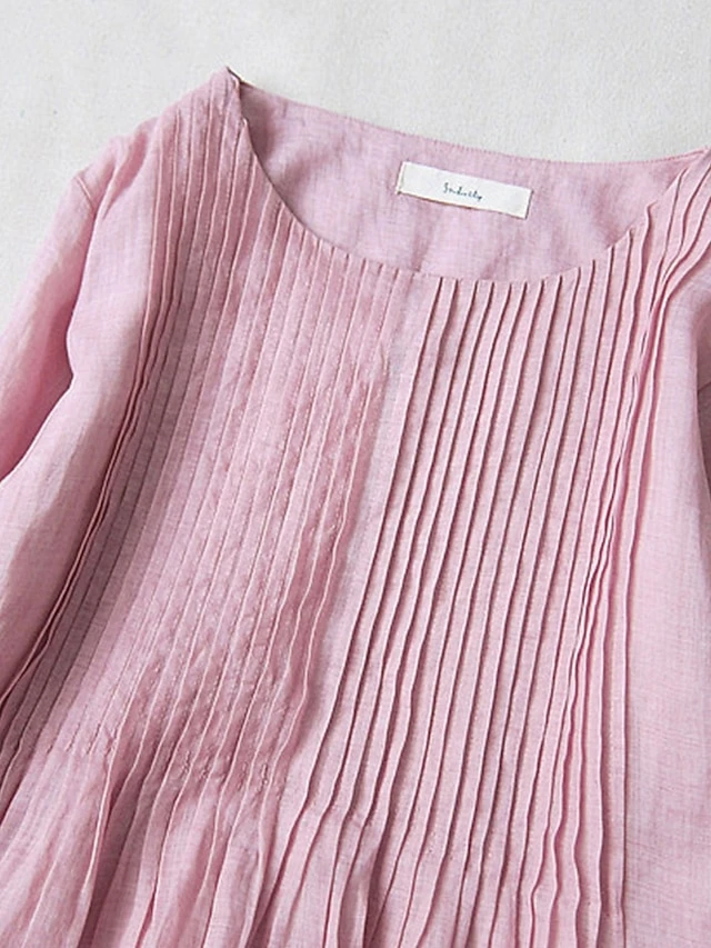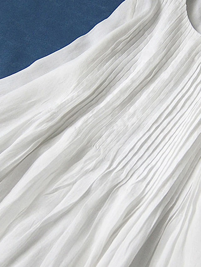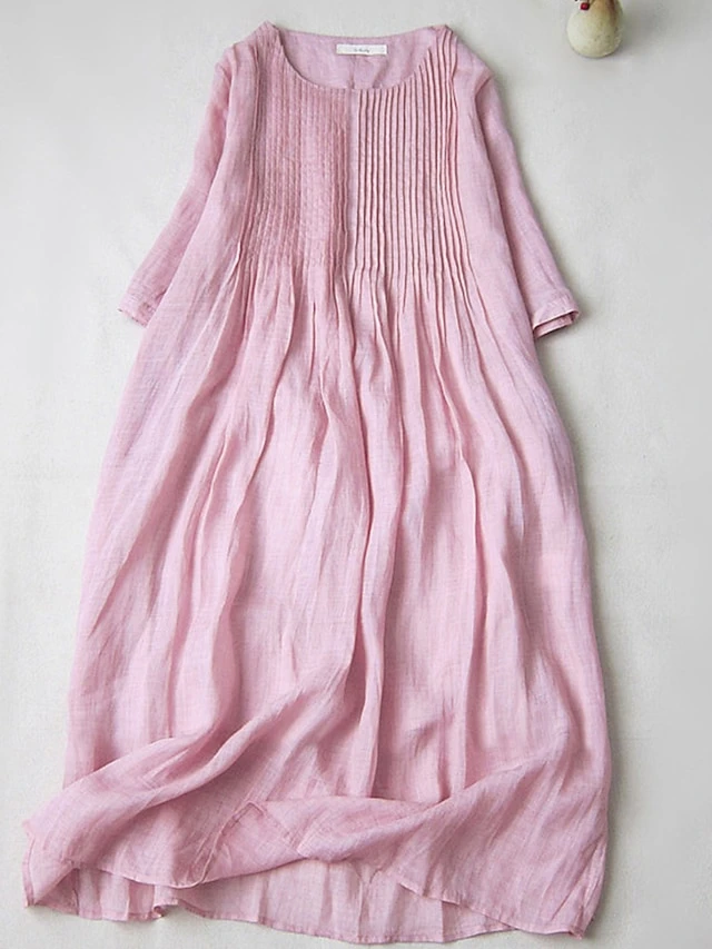 Women’s Casual Dress Cotton Linen Dress Swing Dress Midi Dress Cotton Blend Basic Casual Outdoor Daily Crew Neck Ruched Pocket Short Sleeve Summer Spring 2023 Loose Fit White Pink Purple Plain M L XL