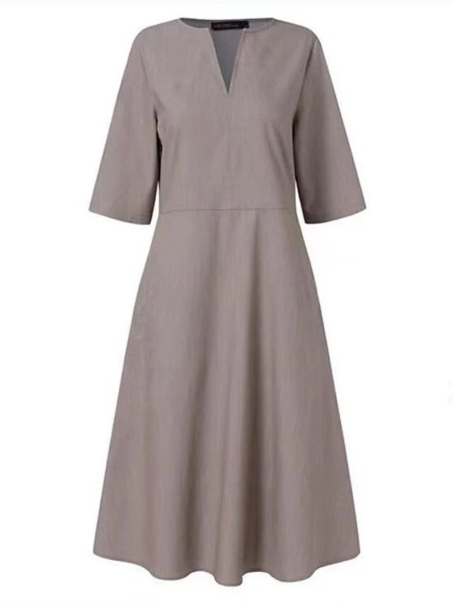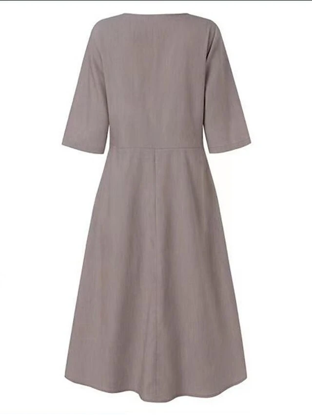 Women’s Casual Dress Cotton Linen Dress Swing Dress Midi Dress Linen Cotton Blend Basic Casual Outdoor Daily Vacation V Neck Pocket Half Sleeve Summer Spring 2023 Regular Fit Black Blue Gray Plain S