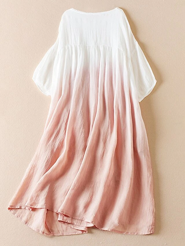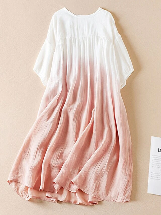 Women’s Casual Dress Cotton Linen Dress Swing Dress Midi Dress Polyester Fashion Casual Outdoor Daily Vacation Crew Neck Pocket Print Half Sleeve Spring Fall Autumn 2023 Loose Fit Pink Blue Brown