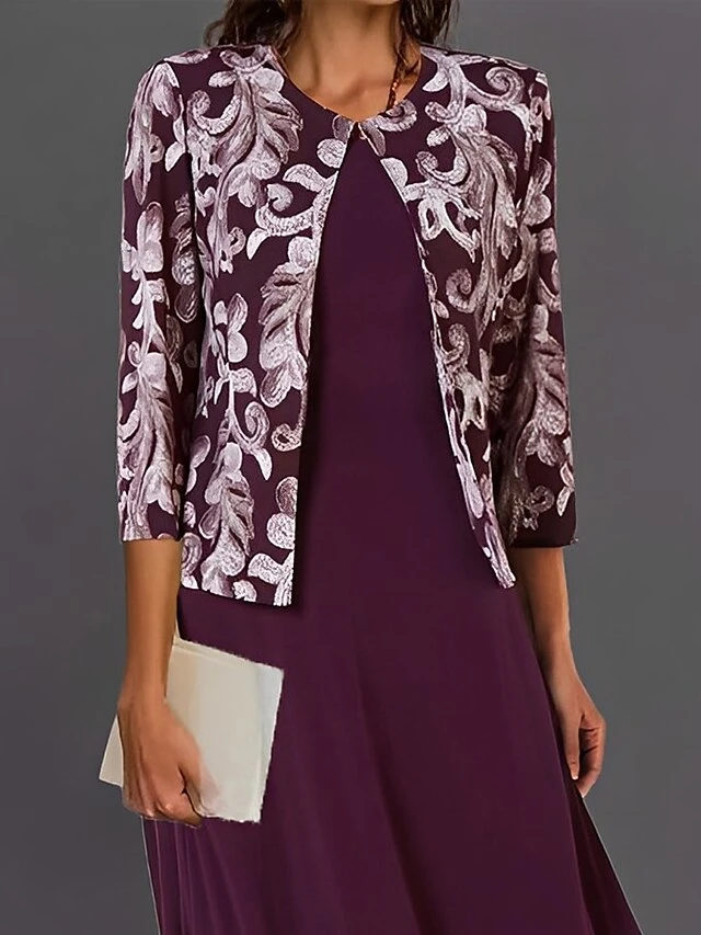 Women’s Casual Dress Dress Set Two Piece Dress Midi Dress Black Wine Navy Blue 3/4 Length Sleeve Print Print Winter Fall Autumn Crew Neck Stylish 2023 S M L XL XXL 3XL