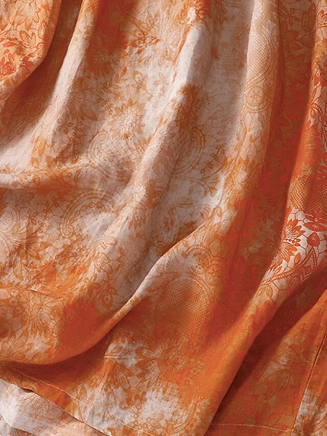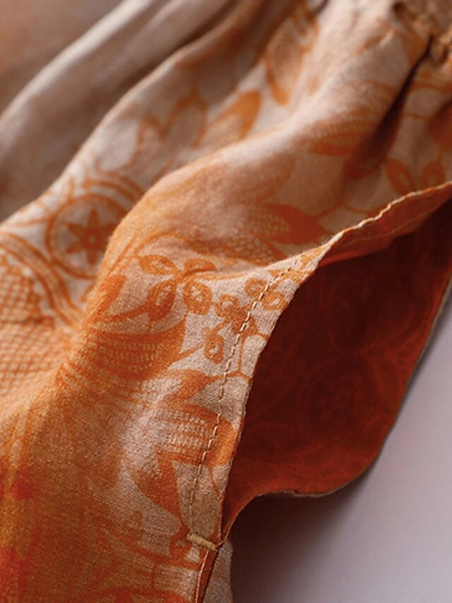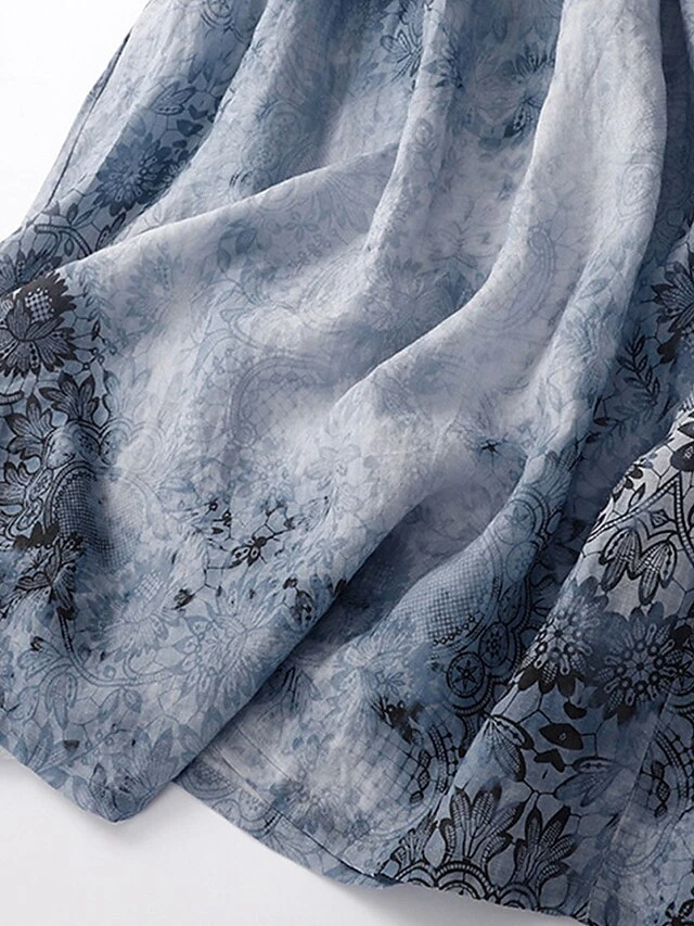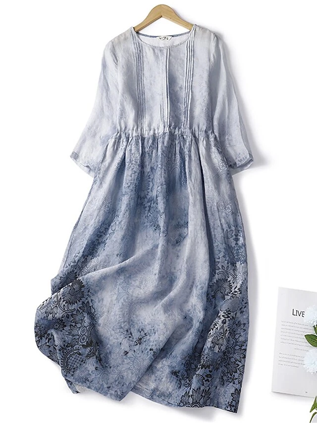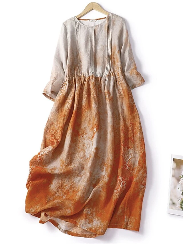 Women’s Casual Dress Linen Dress Midi Dress Linen Fashion Romantic Outdoor Daily Holiday Crew Neck Pocket Print 3/4 Length Sleeve Fall Winter Autumn 2023 Loose Fit Blue Orange Painting Flower M L XL