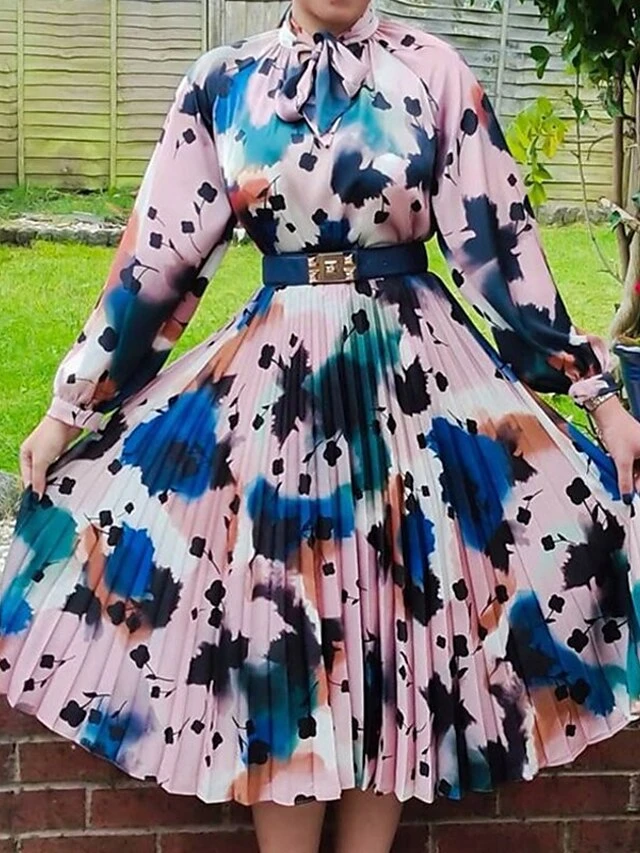 Women’s Casual Dress Swing Dress Church Dress Knee Length Dress Blue Long Sleeve Tie Dye Ruched Fall Winter Autumn V Neck Casual Winter Dress Fall Dress 2023 S M L XL XXL 3XL