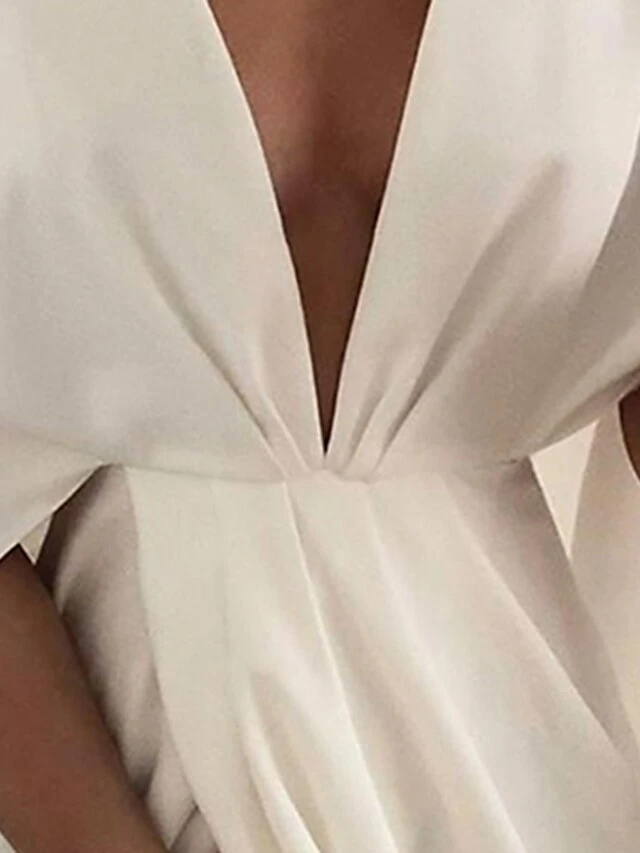 Women’s Casual Dress Swing Dress White Dress Midi Dress Light Pink Half Sleeve Pure Color Patchwork Fall Spring Autumn V Neck Elegant Party Spring Dress Loose Fit 2022 S M L