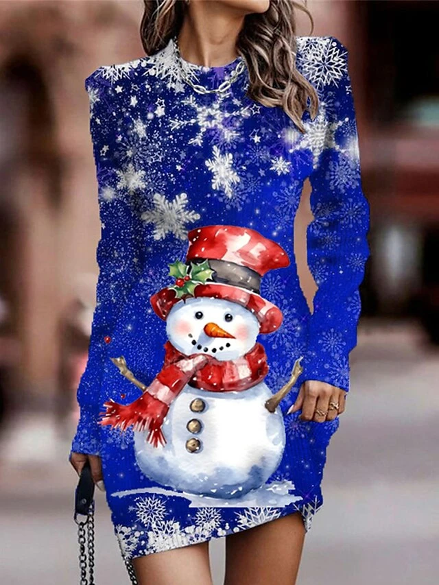 Women’s Christmas Dress Sweater Dress Christmas Sweater Dress Mini Dress Ugly Snowflake Outdoor Christmas Daily Holiday Crew Neck Long Sleeve 2023 Regular Fit Wine Blue Green S M L XL XXL 3XL