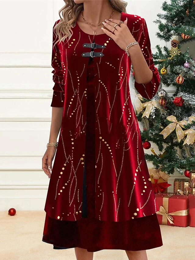 Women’s Christmas Party Dress Black Velvet Dress Cocktail Dress Midi Dress Black Burgundy Royal Blue Long Sleeve Pure Color Patchwork Spring Fall Winter