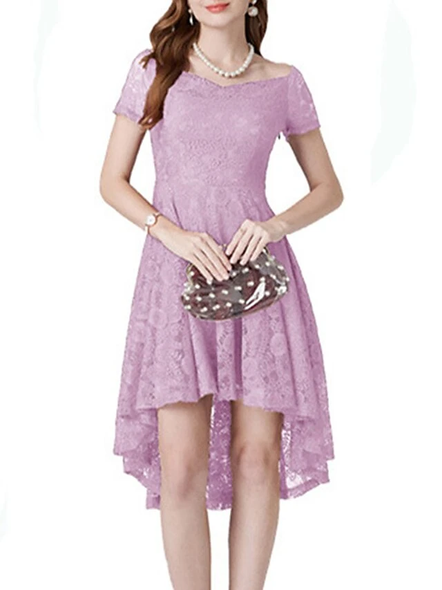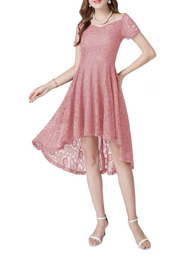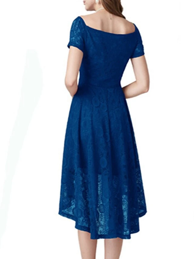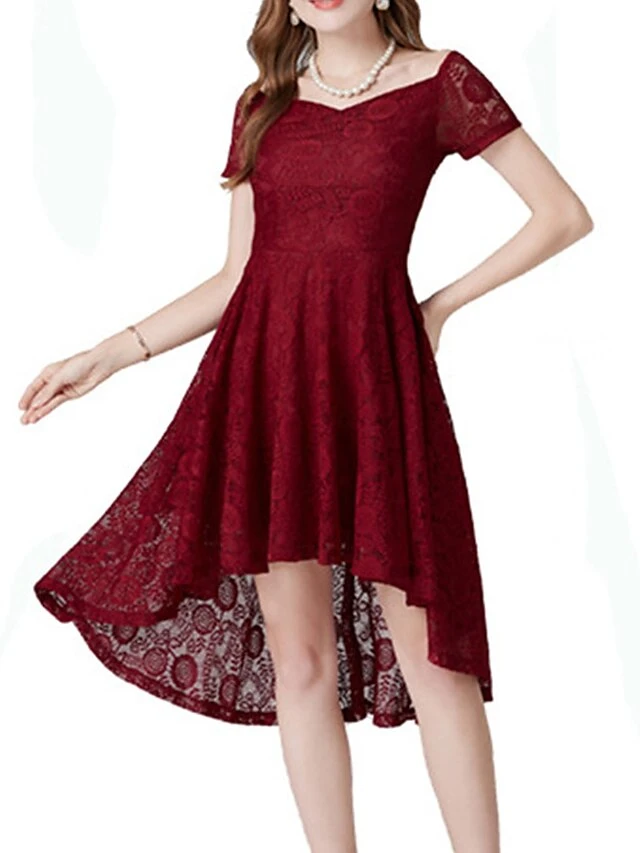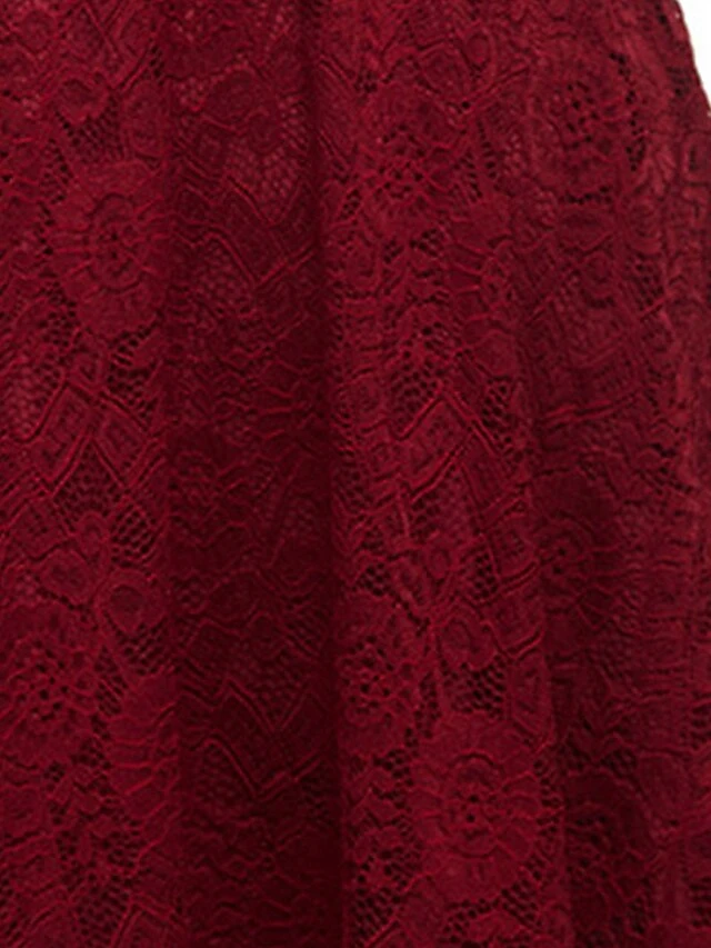 Women‘s Christmas Party Dress Lace Dress Cocktail Dress Midi Dress Black Pink Wine Short Sleeve Pure Color Lace Spring Fall Winter Square Neck Fashion Winter Dress Wedding Guest Vacation 2023