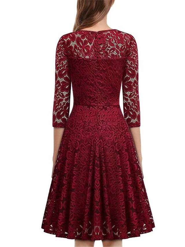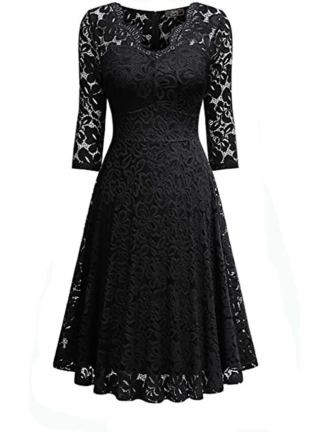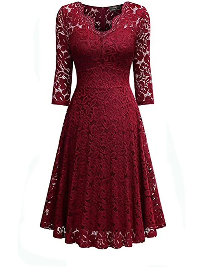Women‘s Christmas Party Dress Lace Dress Cocktail Dress Midi Dress Black Wine Navy Blue 3/4 Length Sleeve Pure Color Lace Spring Fall Winter V Neck Fashion Winter Dress Wedding Guest Vacation 2023