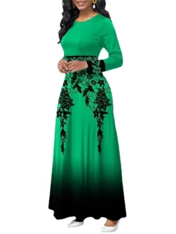 Women‘s Christmas Party Dress Swing Dress Long Dress Maxi Dress Green Blue Red Long Sleeve Lace Winter Fall Autumn Crew Neck Romantic Party Winter Dress Fall Dress 2022 S M L XL 2XL 3XL 4XL 5XL