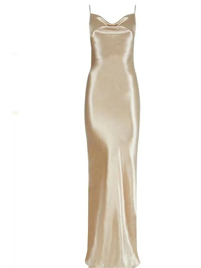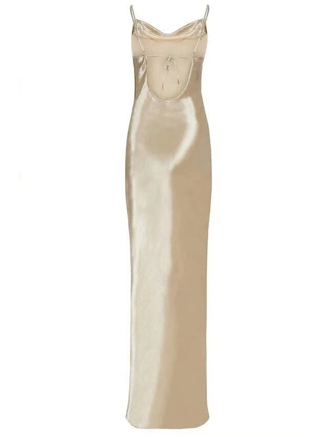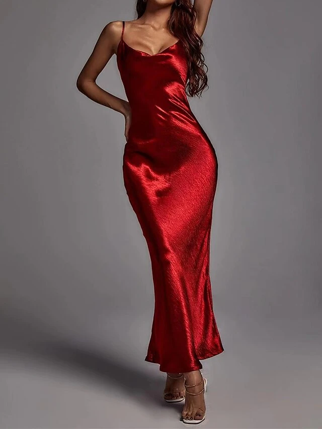 Women‘s Christmas Prom Dress Party Dress Satin Dress Long Dress Maxi Dress Red Gold Sleeveless Pure Color Backless Spring Fall Winter Spaghetti Strap Fashion Birthday Evening Party Wedding Guest