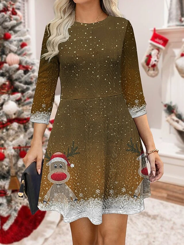 Women‘s Christmas Sweater Dress Jumper Dress Winter Dress Warm Snowflake Deer Outdoor Christmas Daily Holiday Crew Neck Long Sleeve 2023 Regular Fit Blue Brown Green S M L XL XXL 3XL
