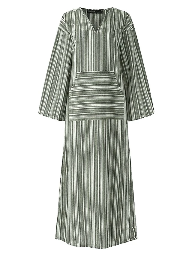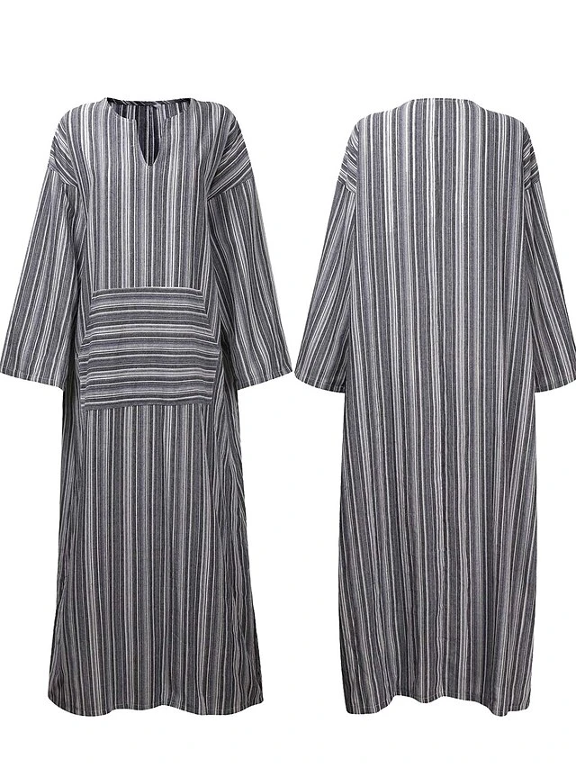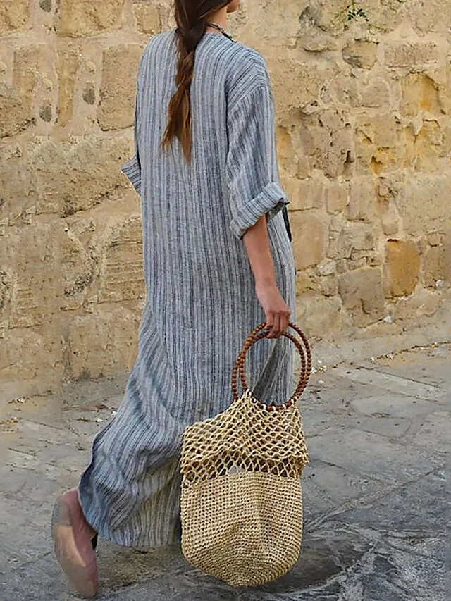 Women‘s Cotton Linen Dress Shirt Dress Casual Dress Tartan Dress Maxi Long Dress Cotton And Linen Casual Outdoor Daily Holiday Split Neck Rolled Cuff Print Long Sleeve Summer Spring Fall 2023