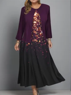 Women’s Dress Set Lace Dress Midi Dress Light Blue Green Gray Half Sleeve Floral Embroidered Layered Patchwork Summer Spring Fall Crew Neck Elegant Chinoiserie 2023 M L XL XXL XXXL 4XL 5XL