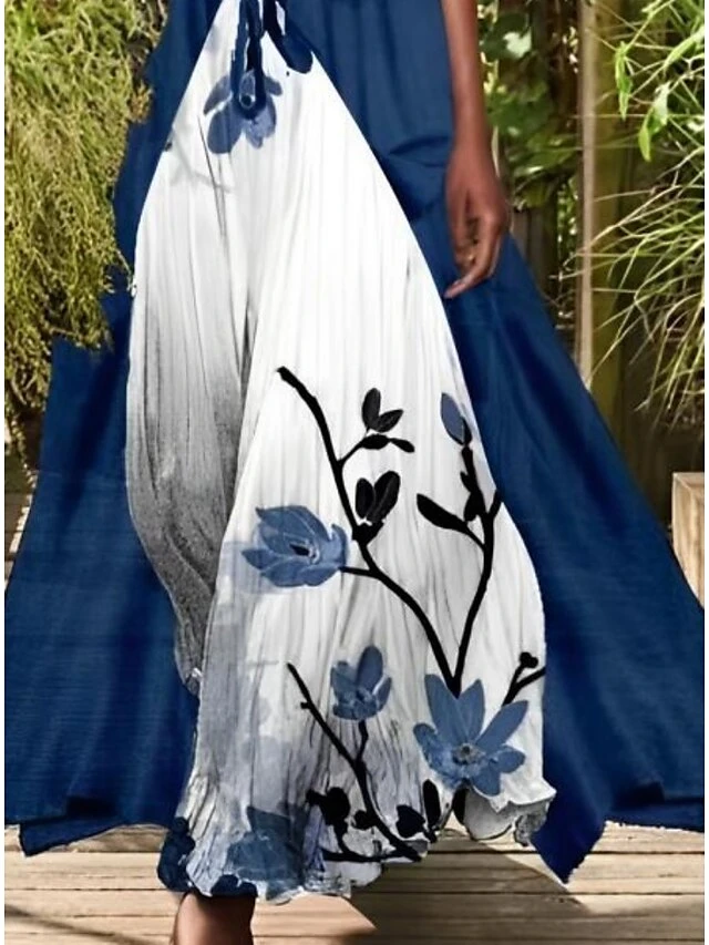 Women’s Dress Set Two Piece Dress A Line Dress Long Dress Maxi Dress Blue Purple Short Sleeve Floral Ruched Summer Spring Crew Neck Elegant 2023 S M L XL XXL 3XL 4XL 5XL