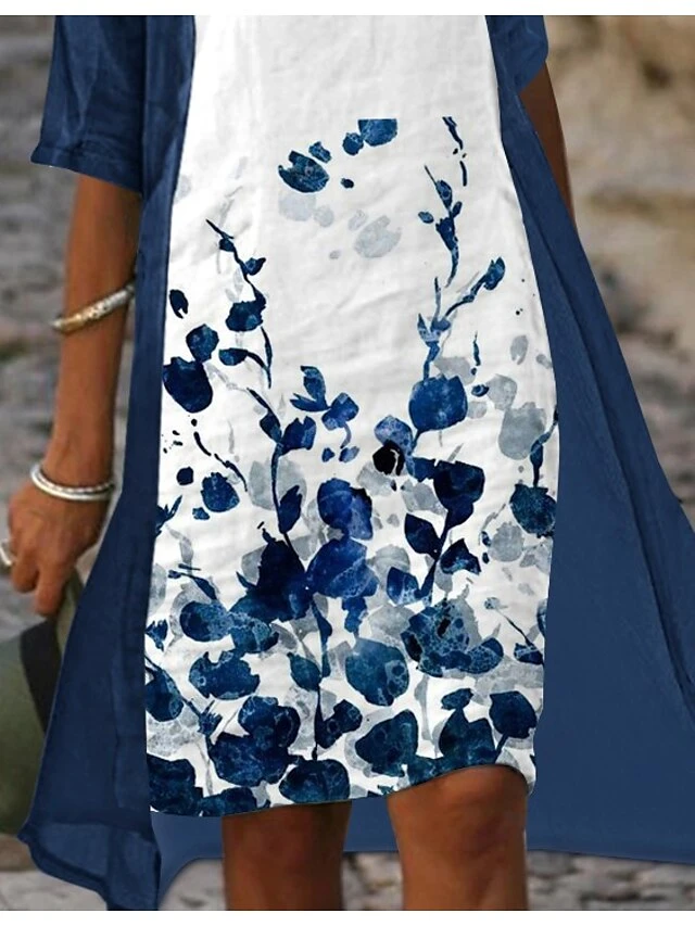 Women‘s Dress Set Two Piece Dress A Line Dress Midi Dress Blue Half Sleeve Floral Print Summer Spring V Neck Casual 2023 S M L XL XXL 3XL