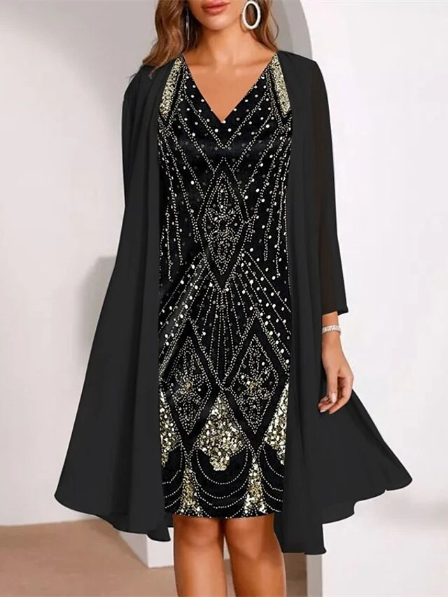 Women’s Dress Set Two Piece Dress Church Dress Midi Dress Black Wine Purple Long Sleeve Geometric Print Summer Spring Fall V Neck Fashion Wedding Guest Spring Dress 2023 M L XL XXL 3XL