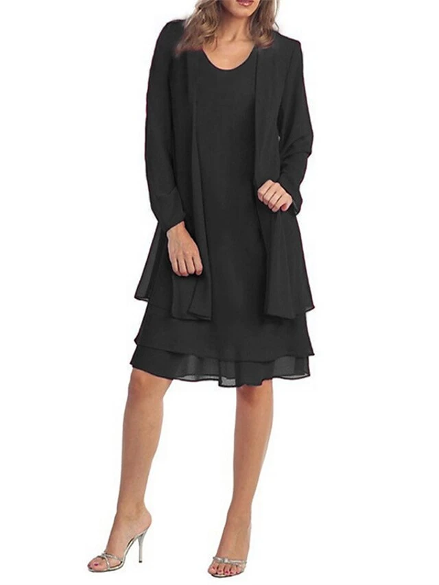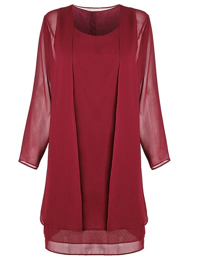 Women’s Dress Set Two Piece Dress Shift Dress Midi Dress Black Red 3/4 Length Sleeve Pure Color Mesh Summer Spring Crew Neck Elegant Fall Dress Mesh M L XL 2XL 3XL 4XL 5XL