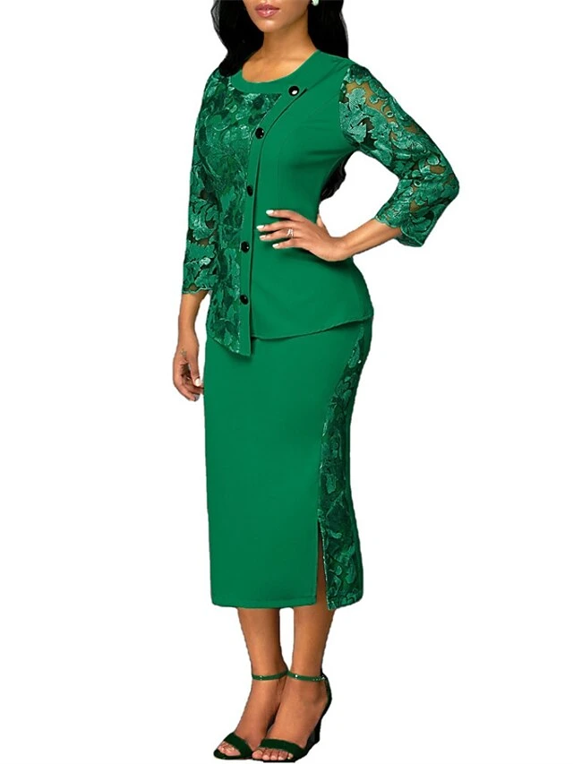 Women’s Dress Set Two Piece Dress Skirt Set Long Dress Maxi Dress Red Blue Green 3/4 Length Sleeve Pure Color Lace Fall Winter Autumn Crew Neck Stylish Slim 2023 S M L XL XXL 3XL 4XL 5XL