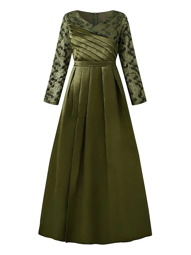 Women‘s Formal Party Dress Swing Dress A Line Dress Long Dress Maxi Dress Black Green Long Sleeve Pure Color Patchwork Winter Fall Spring V Neck Fashion Winter Dress Evening Party 2023 S M L XL 2XL