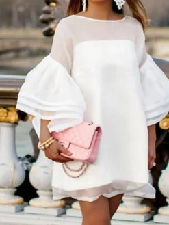 Women‘s Formal Party Dress Wedding Guest Dress White Dress Mini Dress White 3/4 Length Sleeve Pure Color Mesh Winter Fall Autumn Round Neck 2023 S M L XL XXL 3XL 4XL