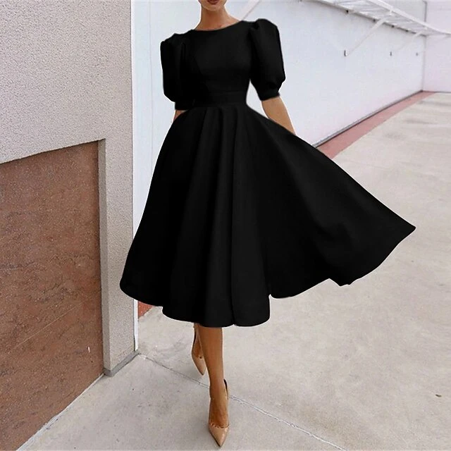 Women’s Party Dress Casual Dress Swing Dress Midi Dress Black White Pink Short Sleeve Pure Color Backless Summer Spring Crew Neck Party Party Birthday Spring Dress 2023 S M L XL 2XL