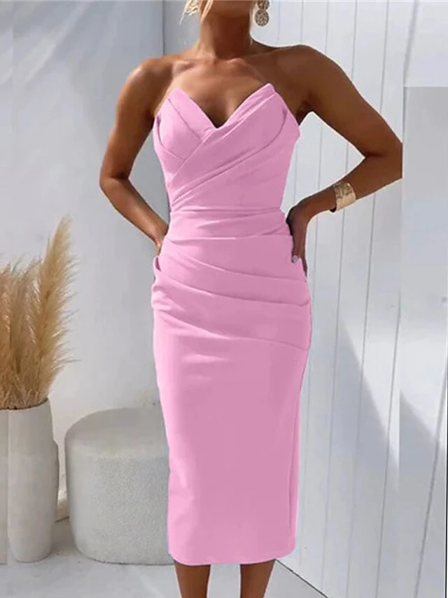 Women’s Party Dress Cocktail Dress Bodycon Midi Dress Black White Pink Sleeveless Pure Color Ruched Fall Autumn Strapless Fashion Wedding Guest Birthday Vacation 2023 S M L XL