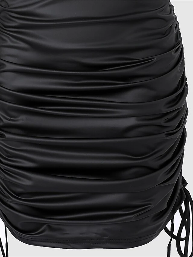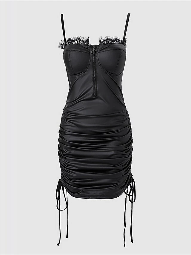 Women’s Party Dress Cocktail Dress Bodycon Mini Dress Black Sleeveless Pure Color Lace Spring Fall Winter Spaghetti Strap Fashion Wedding Guest Vacation 2023 S M L XL