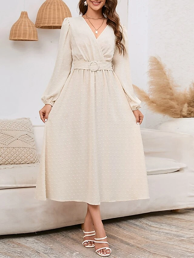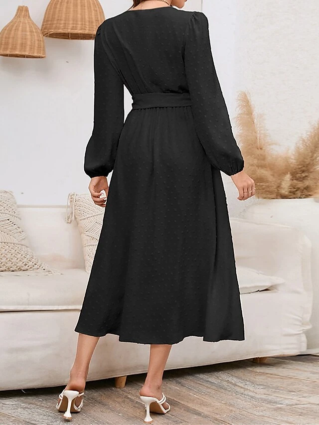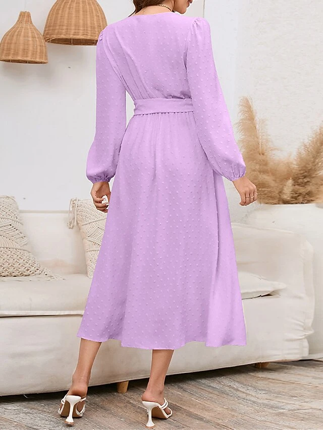 Women’s Party Dress Cocktail Dress Wedding Guest Dress Midi Dress Black White Purple Long Sleeve Pure Color Lace Up Fall Winter Autumn V Neck Fashion Winter Dress Wedding Guest Vacation 2023 S M L XL
