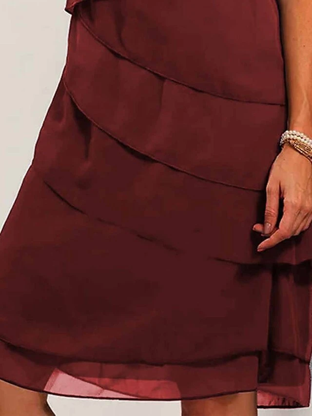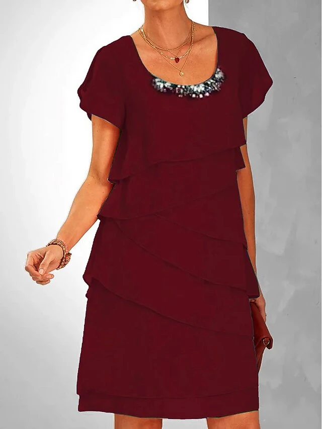 Women’s Party Dress Cocktail Dress Wedding Guest Dress Midi Dress Wine Short Sleeve Pure Color Patchwork Summer Spring Fall Crew Neck Fashion Wedding Guest Vacation Summer Dress S M L XL 2XL 3XL