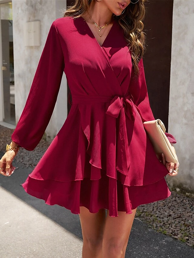 Women’s Party Dress Cocktail Dress Wedding Guest Dress Mini Dress Black Pink Wine Long Sleeve Pure Color Lace Up Fall Winter Autumn V Neck Fashion Winter Dress Wedding Guest Vacation 2023 S M L XL