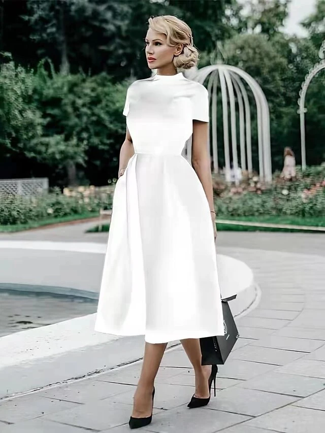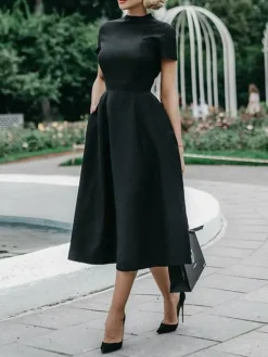 – Features: This dress features a zipper closure, round neck design, solid color, and a flattering A-line silhouette. The unique design adds an elegant and fashionable touch to your outfit.