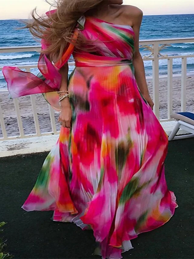 Women’s Party Dress Corset Dress Swing Dress Long Dress Maxi Dress Rainbow Sleeveless Tie Dye Print Spring Summer One Shoulder Party Party 2023 S M L XL