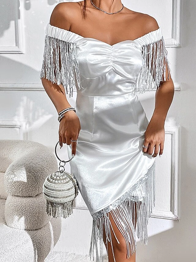 Women’s Party Dress Fringe Dress Cocktail Dress Midi Dress White Half Sleeve Pure Color Tassel Fringe Summer Spring Fall Square Neck Fashion Vacation 2023 S M L XL
