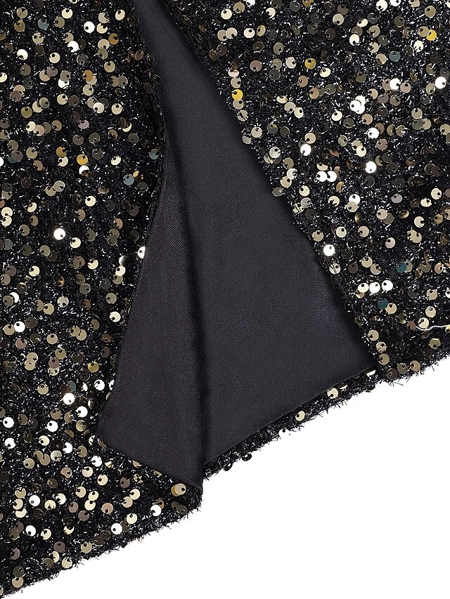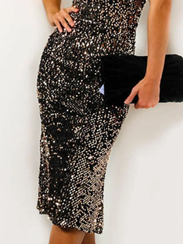 Women‘s Party Dress Homecoming Dress Sequin Dress Bodycon Midi Dress Black Short Sleeve Pure Color Sequins Fall Spring Summer Stand Collar Office 2023 S M L XL