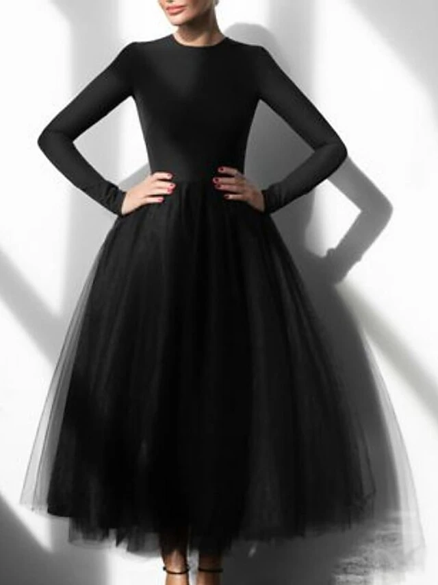 Women’s Party Dress Homecoming Dress Swing Dress Midi Dress Black White Pink Long Sleeve Pure Color Mesh Winter Fall Spring Crew Neck Stylish Party Winter Dress Daily 2022 S M L XL
