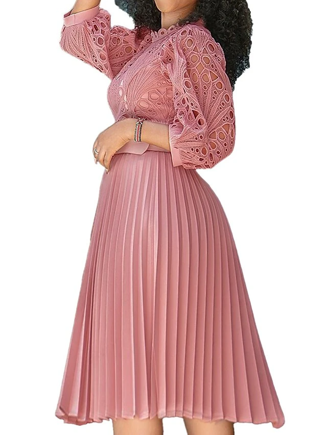 Women’s Party Dress Lace Dress A Line Dress Midi Dress Black White Pink 3/4 Length Sleeve Pure Color Lace Fall Winter Autumn Crew Neck Elegant Party Spring Dress 2023 S M L XL XXL 3XL