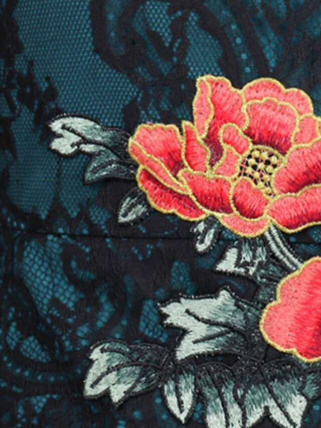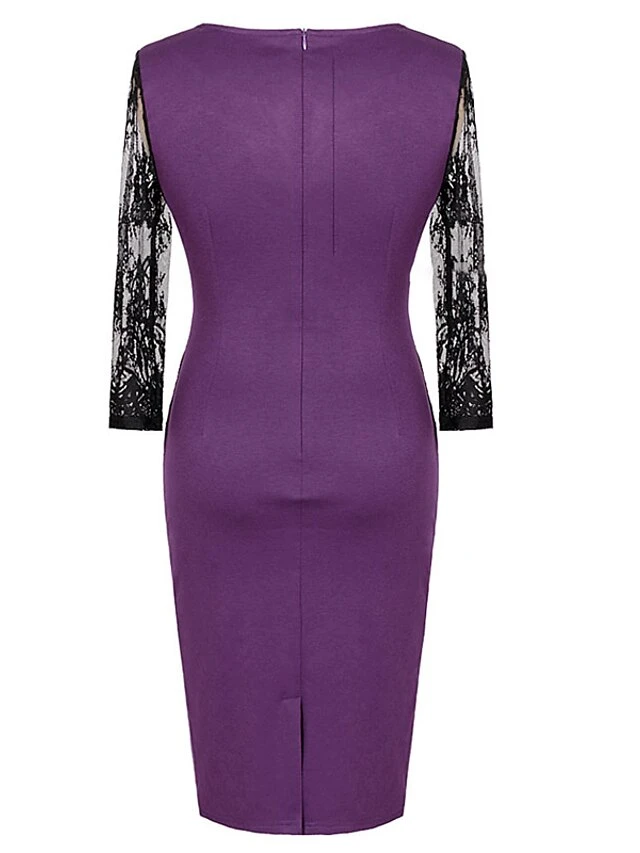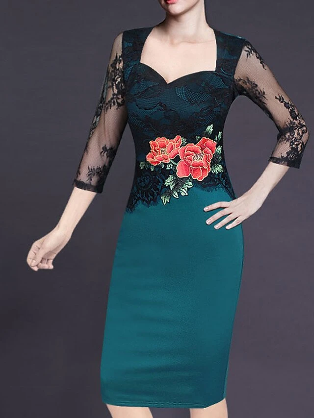 Women’s Party Dress Lace Dress Bodycon Midi Dress Purple Green 3/4 Length Sleeve Floral Lace Fall Winter Autumn Square Neck Stylish 2023 S M L XL XXL 3XL 4XL 5XL