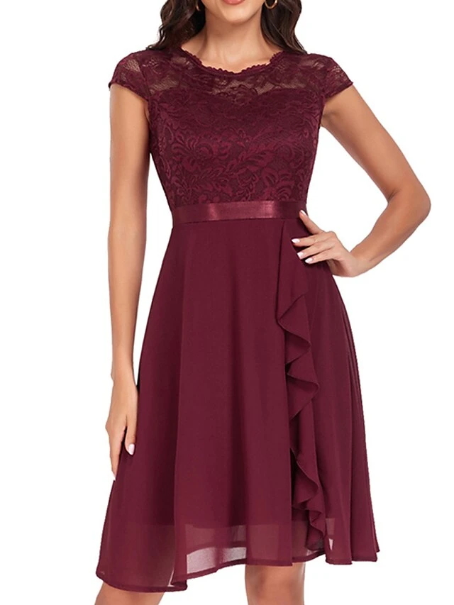 Women’s Party Dress Lace Dress Cocktail Dress Midi Dress Black Pink Wine Short Sleeve Pure Color Lace Spring Fall Winter Crew Neck Fashion Winter Dress Wedding Guest Vacation 2023 S M L XL XXL