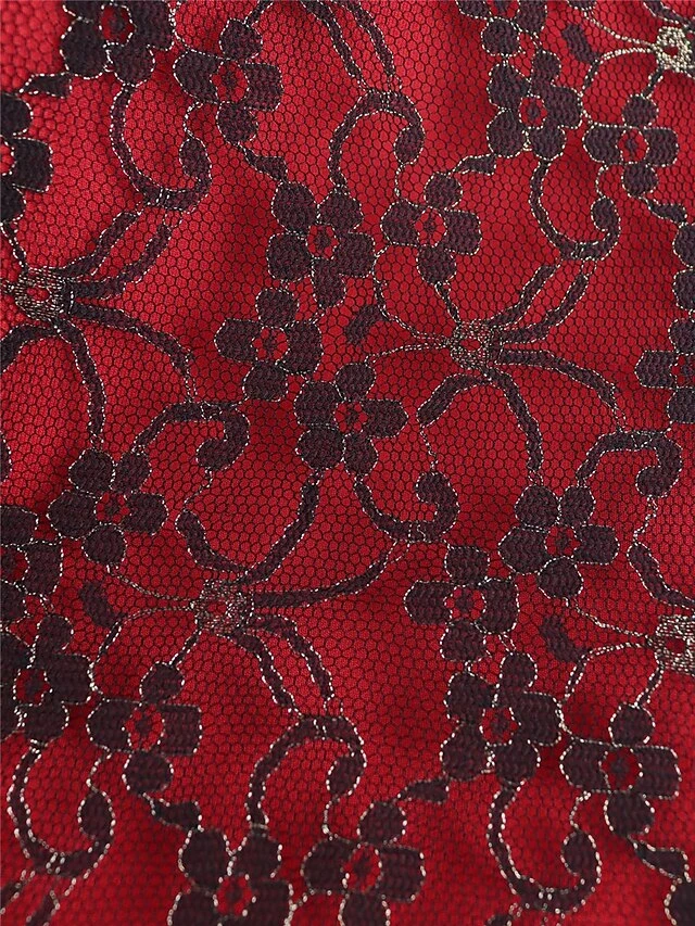 Women’s Party Dress Lace Dress Cocktail Dress Midi Dress Red Short Sleeve Pure Color Lace Summer Spring Fall V Neck Fashion Wedding Guest Vacation Summer Dress 2023 S M L XL XXL 3XL 4XL