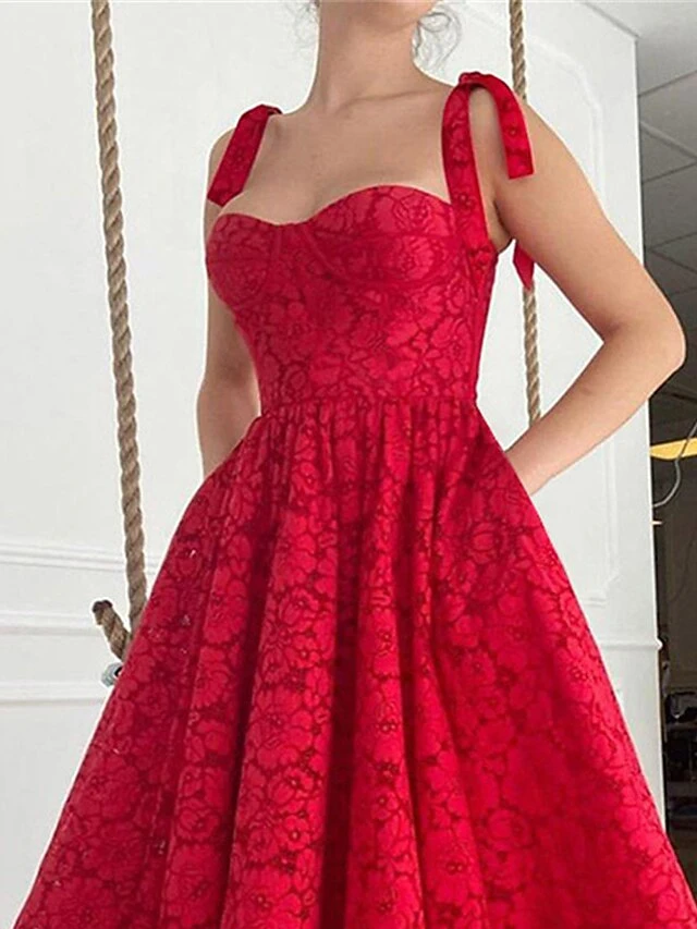 Women’s Party Dress Lace Dress Cocktail Dress Midi Dress Red Sleeveless Pure Color Lace Spring Fall Winter Spaghetti Strap Fashion Winter Dress Wedding Guest Vacation 2023 S M L XL