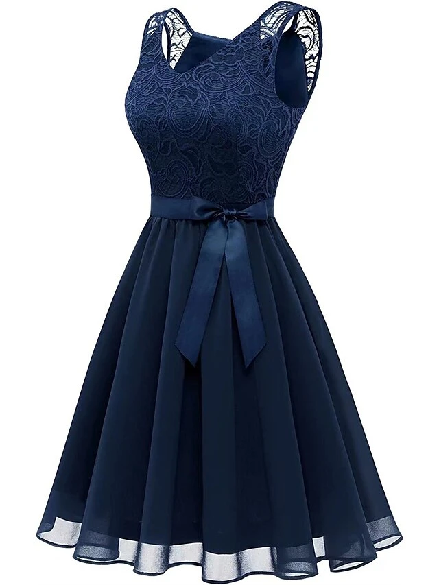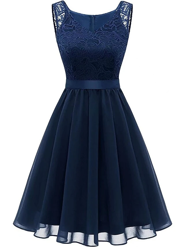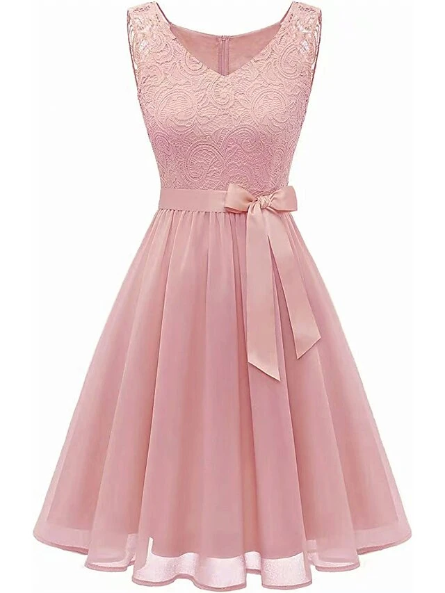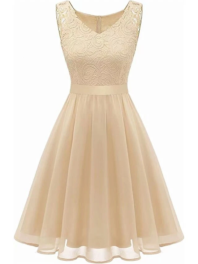 Women’s Party Dress Lace Dress Homecoming Dress Midi Dress Pink Wine Khaki Sleeveless Pure Color Lace Summer Spring Fall V Neck Vintage Wedding Guest Birthday Vacation 2023 S M L XL XXL