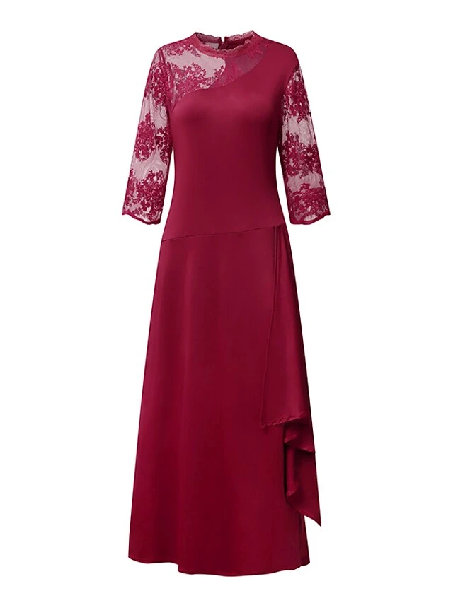 Women’s Party Dress Lace Dress Long Dress Maxi Dress Blue Purple Wine Black 3/4 Length Sleeve Pure Color Lace Mesh Patchwork Fall Spring Crew Neck Hot Elegant Party Slim 2023 S M L XL XXL