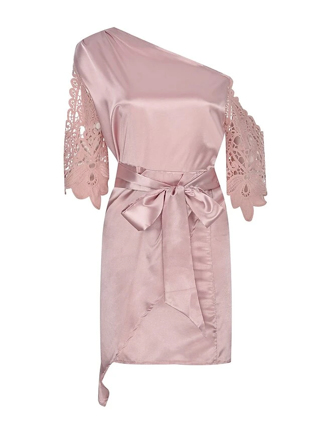 Women’s Party Dress Lace Dress Sheath Dress Midi Dress Pink Half Sleeve Pure Color Lace Spring Fall Autumn Cold Shoulder Personalized Loose Fit 2023 S M L XL